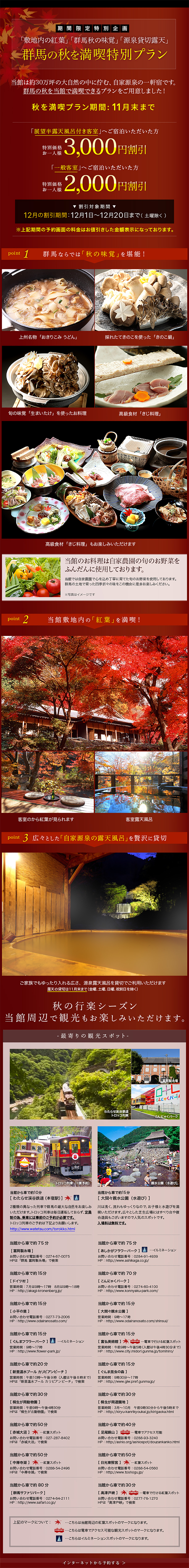 日帰り温泉 客室で夕食付き